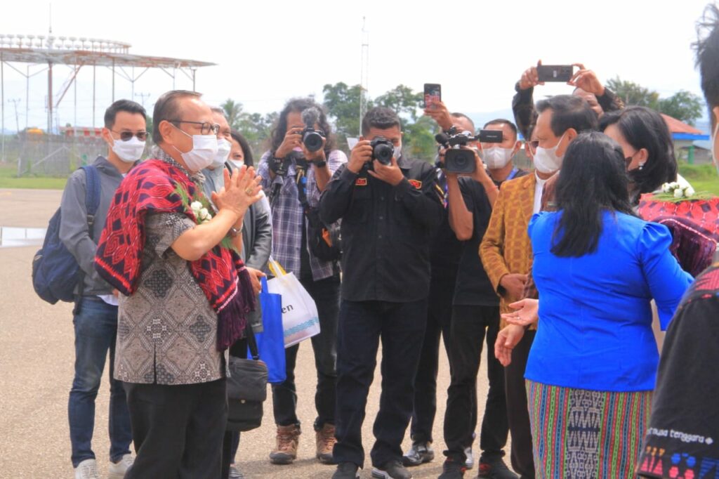 HIDUPKATOLIK.COM – Sebelum menuju ke Kabupaten Malaka, untuk penahbisan Gereja Paroki Bolan, Uskup Agung Jakarta/Ketua KWI, Ignatius Kardinal Suharyo disambut hangat di Bandara A.A. Bere Talo, oleh Uskup Atambua, Mgr. Dominikus Saku, Bupati Belu Agustinus Taolin dan rombongon, Jumat, 3/12/2021.