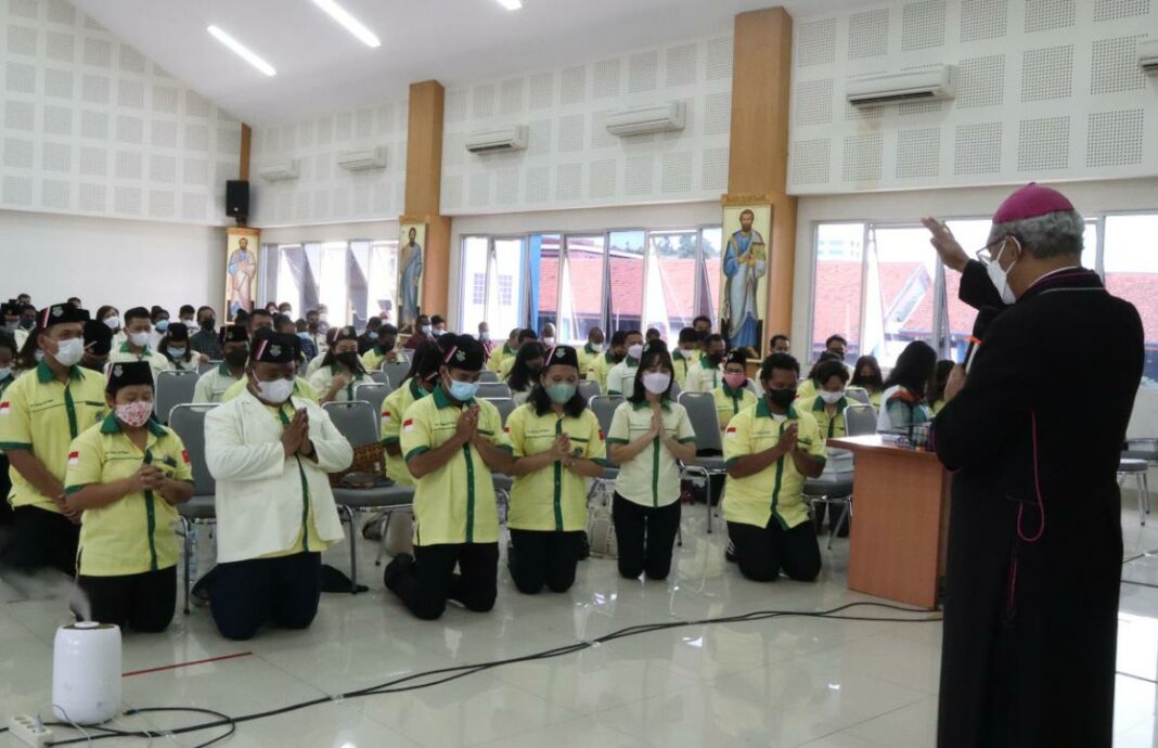 HIDUPKATOLIK.COM – Dalam rangka Pelantikan Pemuda Katolik Se-Keuskupan Bogor (Kota Bogor, Kabupaten Bogor, dan Kota Depok). Uskup Bogor, Mgr Paskalis Bruno Syukur, OFM menyampaikan Pemuda Katolik menjadi pilihan atrategis karena adanya perkembangan gereja dan bangsa di Pusat Pastoral Katedral Bogor, Jl. Kapten Muslihat No.22, Kota Bogor, Minggu, (05/12/2021).