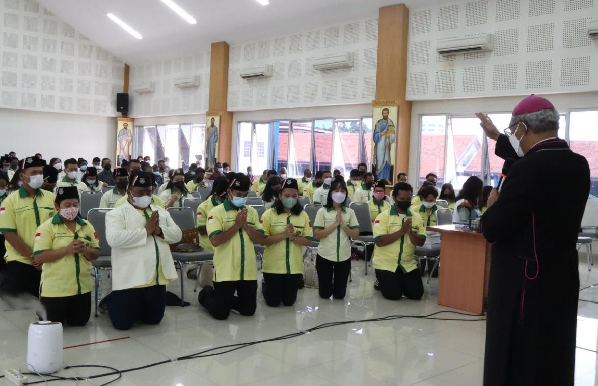 Acara pelantikan Pemuda Katolik se-keuskupan Bogor digelar dengan tetap melaksanakan protokol kesehatan 5M (mencuci tangan, memakai masker, menjaga jarak, menjauhi kerumunan dan membatasi mobilitas).