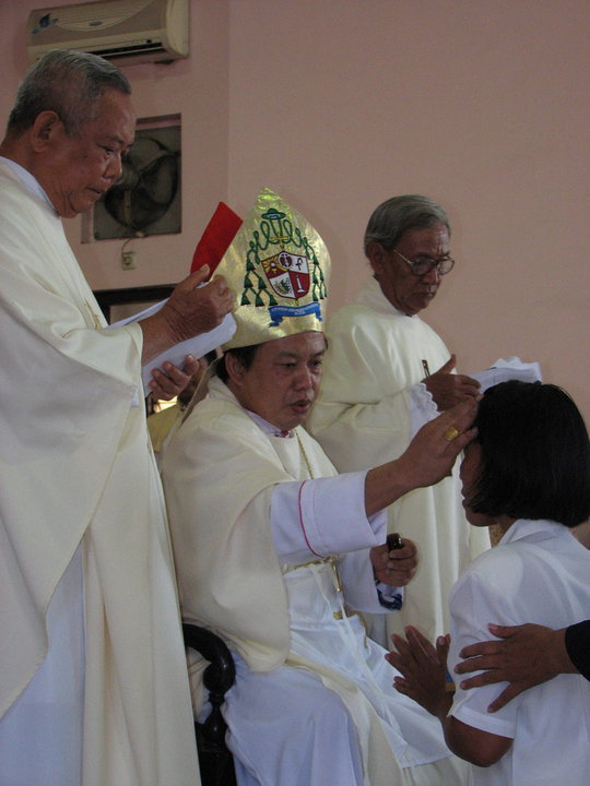 Mgr Vincentius Sutikno Wisaksono memberikan Sakramen Krisma.