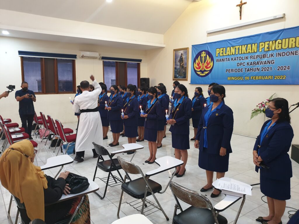 Sebelum pelantikan, diadakan ibadat singkat yang dipimpin oleh Kepala Paroki Kristus Raja Karawang, Pastor Aloysius Supandoyo, OSC. Senada dengan Veronika, Pastor Supandoyo juga meminta kesediaan para wanita untuk terus melayani Gereja dan masyarakat.