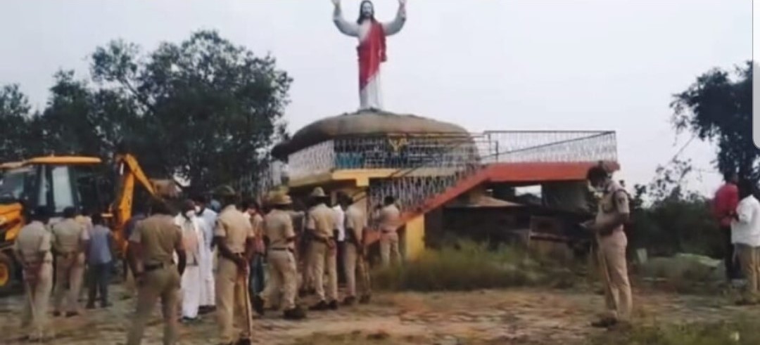 Pemerintahan taluk Mulbagal di distrik Kolar Karnataka menghancurkan patung Yesus setinggi 20 kaki di desa Gokunte pada 15 Februari, di tengah tentangan dari umat Kristiani setempat.