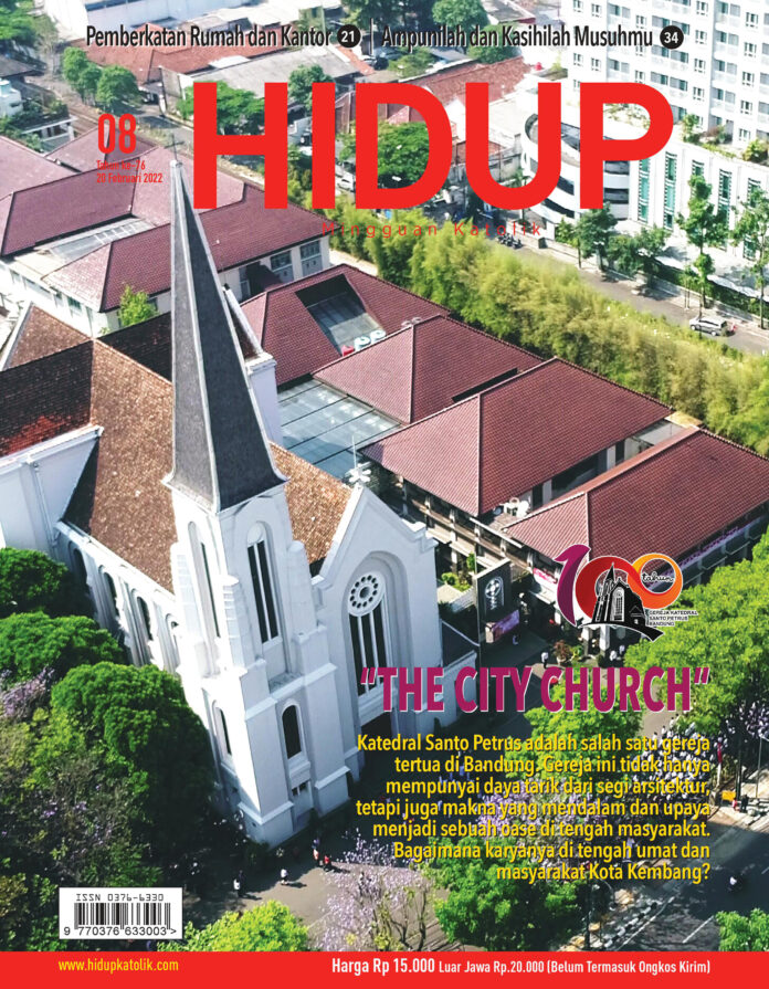 SAJIAN UTAMA: Seabad Katedral Bandung! Gereja ini sarat makna. Begitu juga arsitektur klasik Neo-Gotiknya. Bagi warga Priangan, gereja ini merupakan salah satu ikon. Gereja ini menjadi rujukan bila orang bertanya tentang salah satu gereja tertua di Jawa Barat. Kisah gereja ini sungguh menarik untuk disimak. Bagaimana dulu, kini, dan ‘aksi’ ke depan? Ada wawancara khusus dengan kepala Paroki Katedral. Jangan lewatkan pula pesan dan harapan Uskup Bandung, Mgr. Subianto.