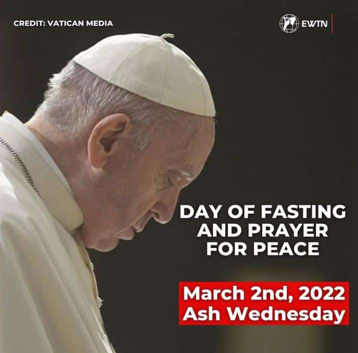 Rabu Abu besok menjadi “istimewa” karena Sri Paus Fransiskus mengajak kita berdoa dan berpuasa dengan intensi perdamaian dunia, khususnya bagi Ukraina.