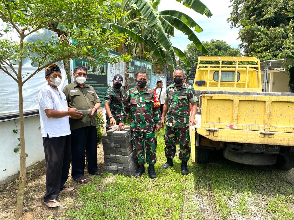 Dalam kunjungan ini, bantuan 100 m pavling block diserahkan untuk merapikan halaman pura.