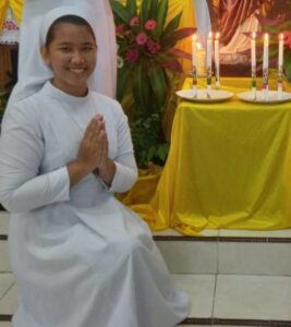 Tahun 2014 saya memasuki masa postulan dan masa novisiat. Saya mendalami  spiritualitas  dan kehidupan  rohani  yang menjadi dasar bangunan  hidup religius saya. Saya kian tertarik dengan karya Kongregasi, yaitu melayani yang bisu tuli dan buta, pendidikan, dan lain-lain.  Semangat pelayanan para suster yang dipercayakan Kongregasi  kian mendorong saya memberanikan diri mengikrarkan kaul sementara. Hidup pelayanan dan semangat kongregasi membuat saya sangat bersyukur atas rahmat panggilan serta kesempatan bisa melayani. Karya pelayanan memang tidak begitu kelihatan secara kasat mata namun bisa dirasakan melalui hidup dan tinggal bersama, berbela rasa dengan mereka  yang sangat membutuhkan  dan terus mewartakan  cinta kasih Allah kepada semua orang. Inilah misteri hidup  yang tidak satu pun tahu apa yang akan terjadi. Saya sangat bersyukur dan bangga menjadi Suster KSSY!”