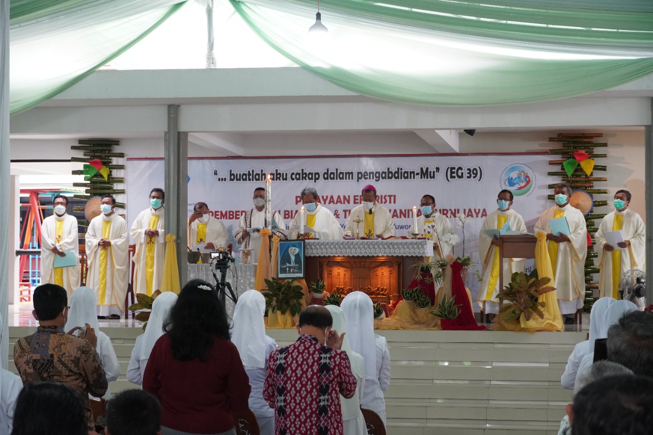 HIDUPKATOLIK.COM – “SEMOGA kehadiran Biara dan Sekolah Tarakanita ini menjadi tanda kehadiran Allah yang menyelamatkan,” kata Uskup Agung Palembang/Administrator Apostolik Tanjungkarang, Mgr. Yohanes Harun Yuwono saat memimpin Perayaan Ekaristi pemberkatan Biara Carolus Borromeus (CB) dan TK Tarakanita Murni Jaya, Tubaba, Lampung, Selasa, 19/4/2022.