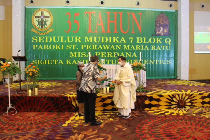 HIDUPKATOLIK.COM – Sabtu, 23 April 2022 menjadi hari yang istimewa bagi para Sedulur Ex-Mudika Wilayah 7, Gereja Santa Perawan Maria Ratu, Paroki Blok Q. Paguyuban yang sudah berusia 35 tahun ini menyelenggarakan Perayaan Ekaristi “Sejuta Kasih untuk Vincentius” di Ballroom Vincentius Putra, Jakarta.