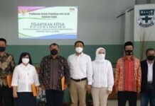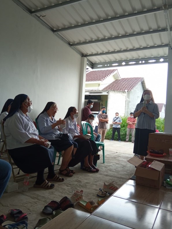 Sr. Moekti, OSU (berdiri) mewakili tiga yayasan, menyampaikan sambutan pada Acara Pemberkatan.