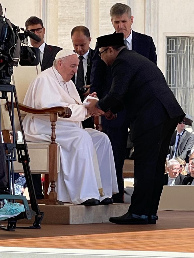 “Betul. Dalam rombongan turut menyertai Plt. Dirjen Bimas Katolik, Ketua Umum PBNU akan audiensi dengan Paus untuk mengundang kembali Paus ke Indonesia, atas arahan Presiden. Bulan lalu Kardinal Tagle, Ketua Kongregasi Propaganda Fide, mengatkan bahwa masih terjadwal kunjungan Paus ke Indonesia, hanya kapan belum tahu, apalagi sekarang Paus sulit berjalan. Doa dan harapan kita,” tulis Jenderal MSF di Roma, Pater Agustinus Purnama, MSF yang turut dalam jamuan malam, Selasa, 7/6/2022 menyambut kehadirian Menteri Agama.