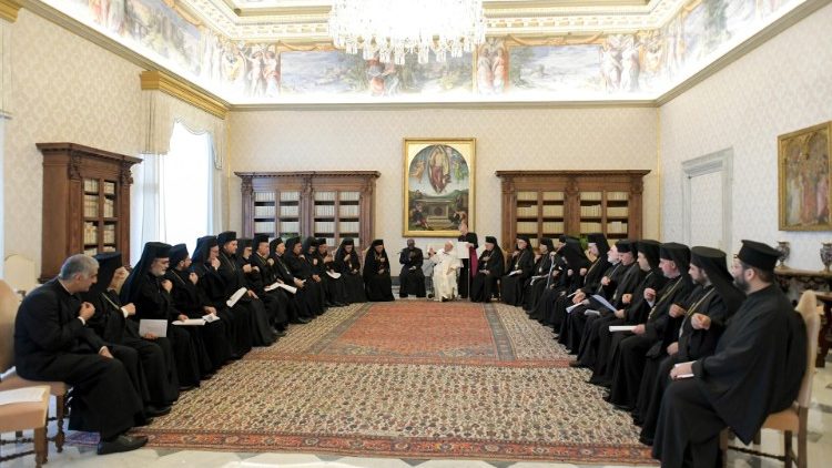 “Anda adalah Sinode,” tegas Paus, “karena karakteristik Anda yang telah diakui sebagai Gereja Patriarkat, dan Anda perlu mempertanyakan diri Anda sendiri tentang gaya sinode dari keberadaan dan tindakan Anda, sesuai dengan kemampuan Anda untuk hidup dalam persekutuan doa dan niat antara Anda sendiri dan dengan Patriark, antara para Uskup dan para imam dan diakon, dengan para religius pria dan wanita, dan dengan umat awam, semuanya bersama-sama membentuk Umat Allah yang Kudus.”