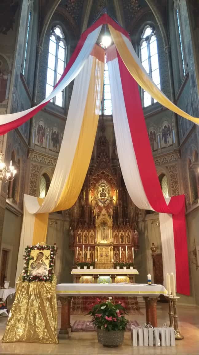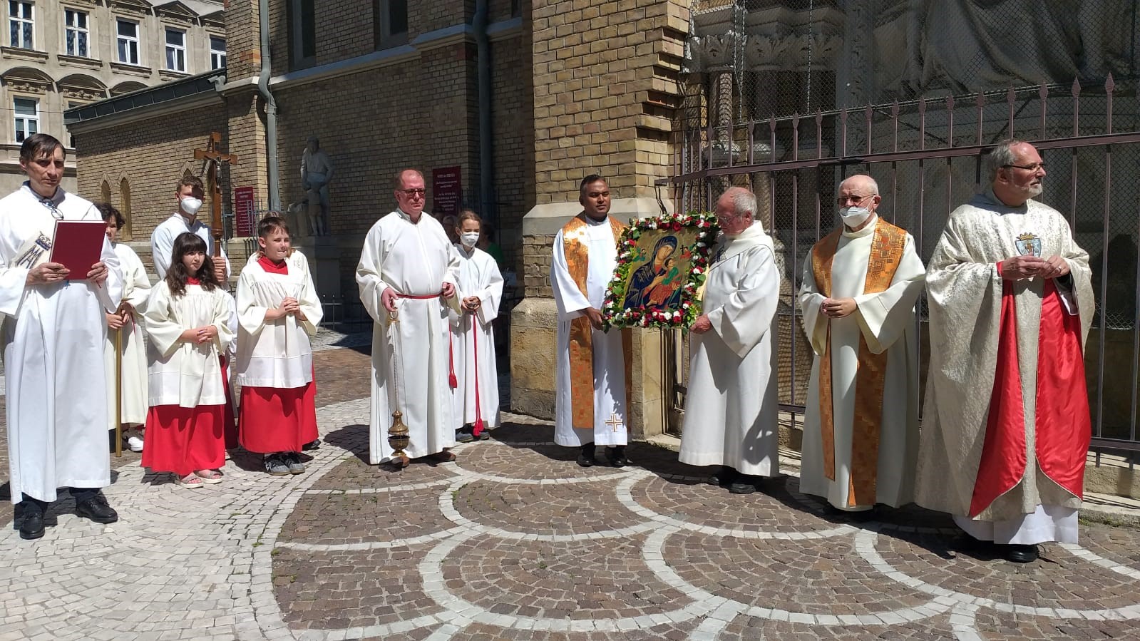 Ikon didekorasi dengan bunga mawar merah dan putih, tidak ketinggalan gereja pun didekorasi dengan bendera Wina (merah-putih) dan bendera Vatikan (kuning-putih). Perayaan Ekaristi yang dipimpin oleh Pater Lorenz Voith, CSsR ini dilanjutkan dengan prosesi perarakan ikon mengelilingi area luar gereja.