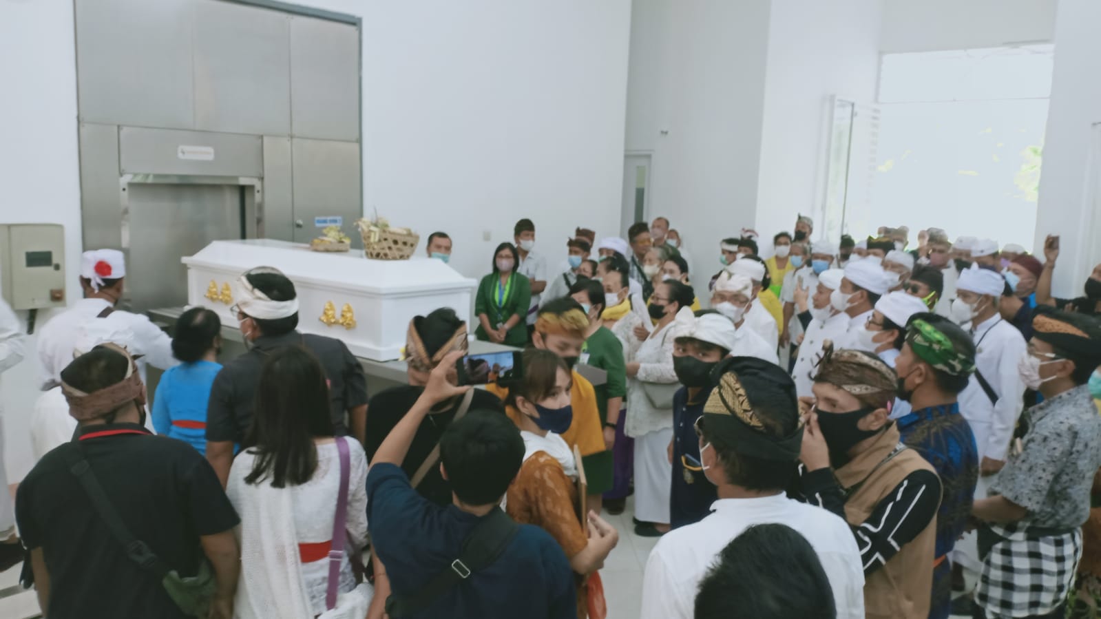 Pengabenan dilaksanakan setelah jenazah almarhum disemayamkan selama 3 hari 2 malam di Ruang Kenanga Rumah Duka Oasis Lestari. Dan jenazah dikremasi pada Selasa, 5 Juli 2022. Sesudahnya disempurnakan dengan pengabenan yang dipimpin Pandita Ida Pedanda Gede Putra Sidemen.