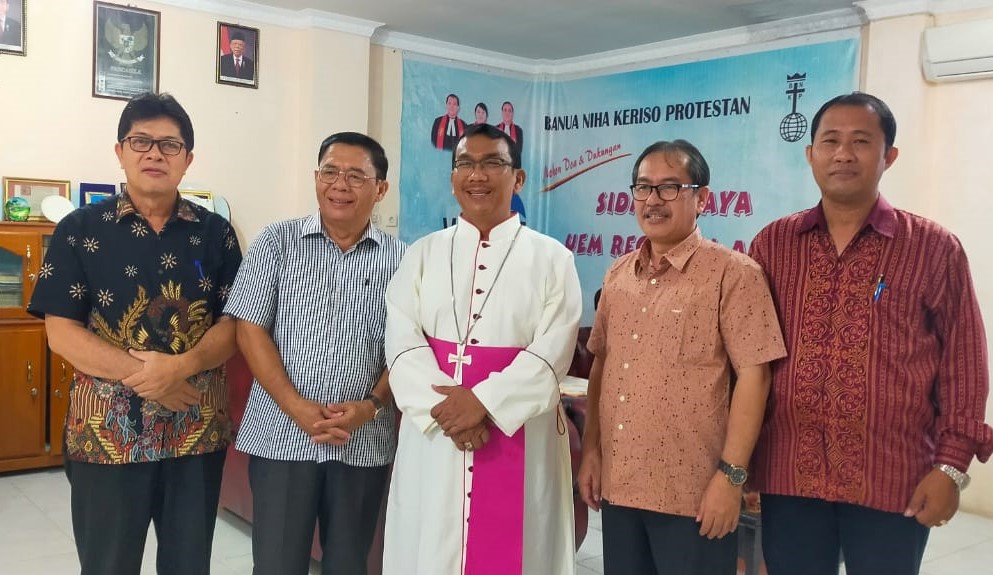 HIDUPKATOLIK.COM – PERSAHABATAN pimpinan Gereja Katolik dan Gereja-Gereja Protestan semakin erat terjalin di Kepulauan Nias. Hal itu tampak dari saling kunjung-mengunjungi antara pimpinan Gereja. Hari Senin, 11/7/2022, pagi hari, Uskpup Sibolga, Mgr. Fransiskus Sinaga menyambangi Kantor Sinode Gereja Angowuloa Masehi Indonesia Nias (AMIN). Kunjungan ini dalam rangka menyampaikan selamat (proficiat) atas terpilihnya Bishop baru Gereja AMIN, Pendeta Sorofati Gea.