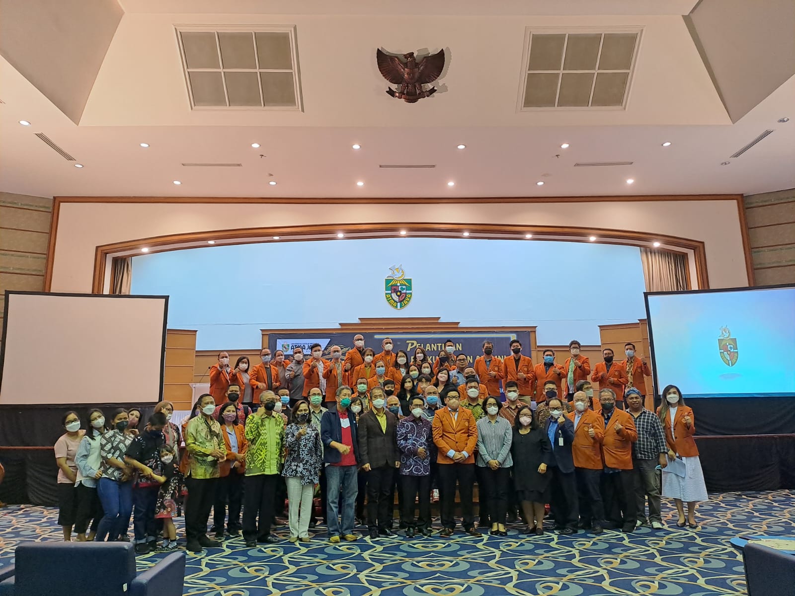 Misa Syukur Pisah Sambut Pengurus Perkumpulan Alumni Atma Jaya Jakarta dipimpin secara konselebran oleh Romo Stevanus Harry Yudanto, Romo Thomas Ola, OFM Cap dan Romo Albertus Yogo P, Sabtu, 16 Juli 2022 pukul 10.00 WIB.