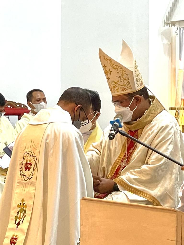 Dalam upacara tahbisan ini, Mgr. Sipayung didampingi oleh Romo Pankras Olak Kraeng, SS.CC, Provinsial Kongregasi SS.CC.