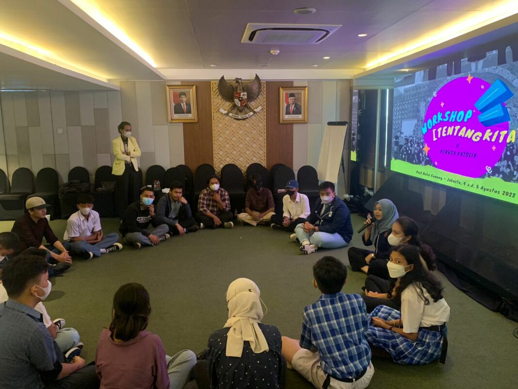 HIDUPKATOLIK.COM – MENJELANG sore hari, Panitia Lustrum Pertama Peresmian Gedung Gereja St. Stanislaus Kostka memenuhi Aula Aloysius Gonzaga, Gereja St. Stanislaus Kostka, Stasi Kranggan, Bekasi, Jawa Barat, Sabtu, 2/7/22. Mereka yang mengenakan kaos bergambar sosok Romo Y.B. Mangunwijaya ini merupakan umat Wilayah Santa Katarina, Stasi Kranggan dan bersiap menyelenggarakan salah satu rangkaian Lustrum Pertama yakni Nonton Bareng (nobar) dan Dialog Film “Sang Manyar, Nyanyian Pinggir Kali” karya Sergius Sutanto.