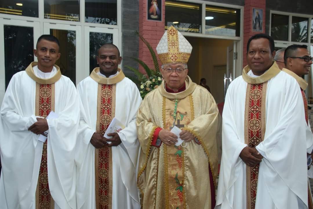 Dari kiri ke kanan: Pastor Fransiskus Luan, Pastor Everardus Resubun MSC, Mgr. P.C. Mandagi, MSC dan Pastor Carolus Boromeus Savsavubun