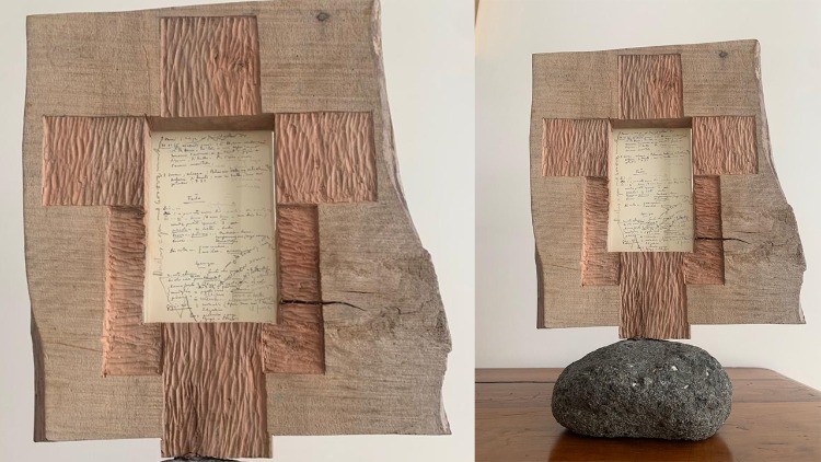 Dari antara catatan-catatan ini diambil relikwi yang dipersembahkan kepada Paus Fransiskus pada Minggu: bukan sepotong tulang atau bagian tubuh seperti biasanya, melainkan secarik kertas putih, yang menguning oleh waktu, berukuran sekitar sepuluh sentimeter, di mana Paus menulis garis besar untuk refleksi spiritual tentang tiga kebajikan teologis yang mengingatkan magisterium pada Audiens Umum.
