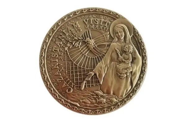 Gambar Perawan ini, yang menggendong Kanak-kanak Yesus dan mengulurkan tangannya ke arah danau yang penuh ikan, muncul di medali yang dirancang untuk perjalanan Paus Fransiskus ke Kazakhstan, yang berlangsung 13 hingga 15 September.