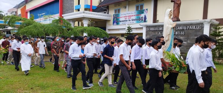 Pada Minggu (2/10/2022) yang lalu, para seminaris di Seminari Menengah St. Paulus Palembang pun secara istimewa mengadakan pembukaan Bulan Rosario dengan prosesi perarakan arca Bunda Maria.