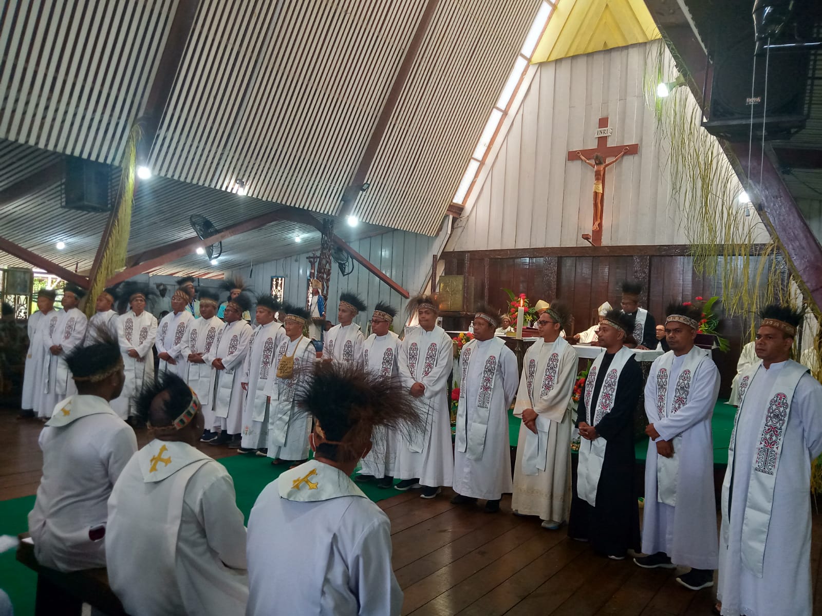 HIDUPKATOLIK.COM – Mengusung tema “Mendayung Bersama Umat Mewujudkan Shalom” Uskup Agats, Mgr. Aloysius Murwito, OFM dan Uskup Banjarmasin, Mgr. Petrus Bodeng Timang membuka Temu Unio Regio Papua (TUR)ke-6 dalam perayaan Ekaristi di Gereja Katedral Salib Suci Agats pada Selasa, 4/10/2022. TUR ke-6 yang dihadiri kurang lebih 120 imam projo dari lima keuskupan di tanah Papua akan berlangsung hingga tanggal 9/10/2022.