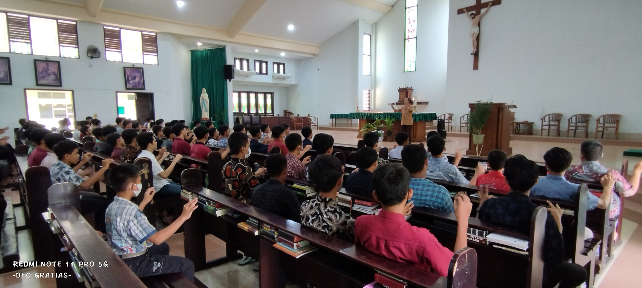 Hari itu Sabtu (23/7/2022) adalah pertemuan pertamanya bersama seminaris untuk berlatih dirigen dan olah vokal.