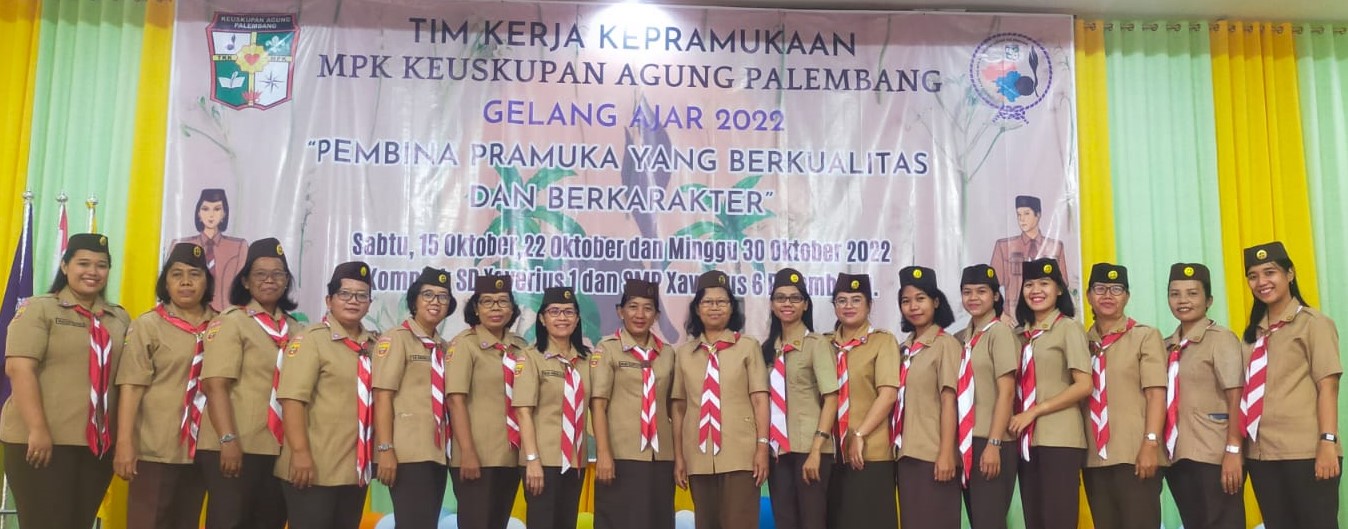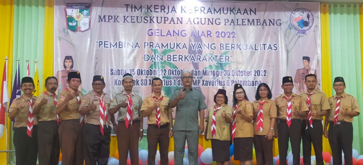 HIDUPKATOLIK.COM – Gelang Ajar Tim Kerja Kepramukaan Majelis Pendidikan Katolik Keuskupan Agung Palembang Tahun 2022 adalah wadah berkumpulnya para Pembina Pramuka sekolah–sekolah Katolik dalam lingkup Keuskupan Agung Palembang khususnya sekolah-sekolah Katolik di Kota Palembang seperti SD Xaverius 1,2,3,4,5,8,9 SD Indriasana, SMP Xaverius 1,2,3,5,6,7, SMP Indriasana, SMP St Louis dan SMA Xaverius 1,2,3,4 dan SMK Xaverius.