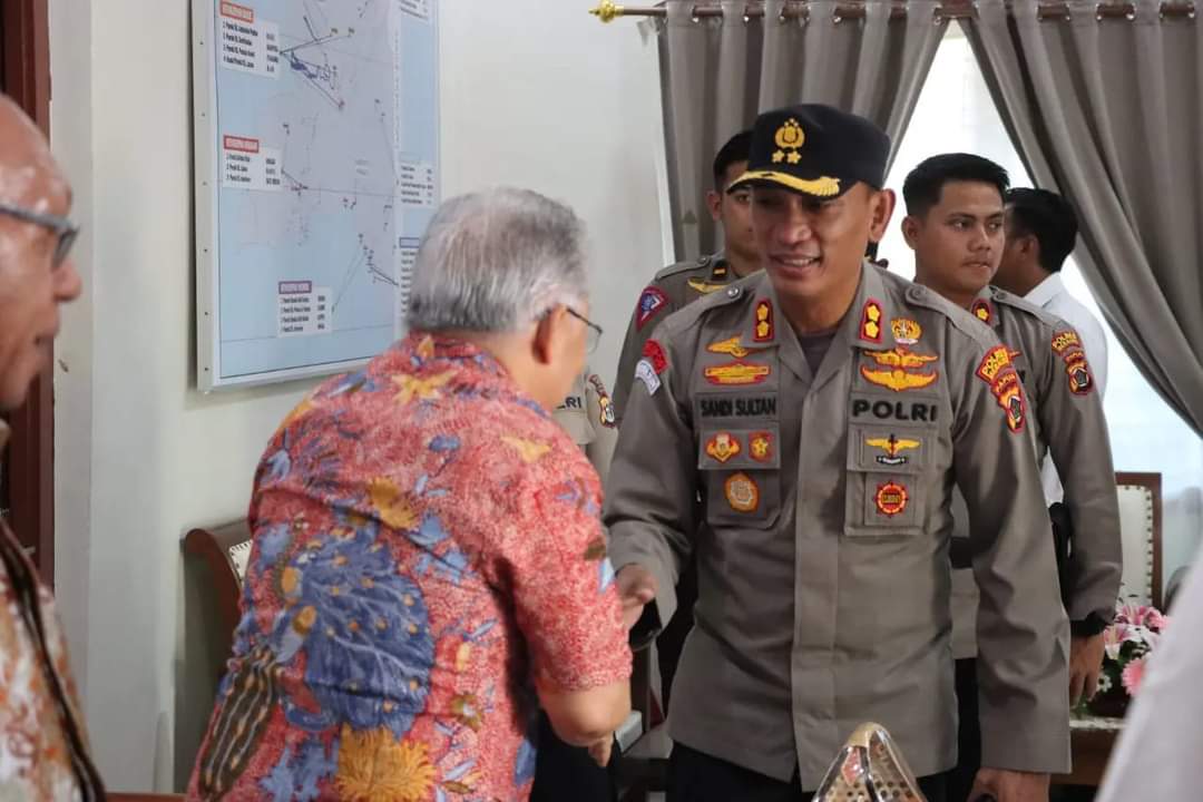 HIDUPKATOLIK.COM – Uskup Agung Merauke, Mgr. Petrus Canisius Mandagi MSC, didampingi Sekjen KAMe, Pastor Johanes Kandam menerima kunjungan silaturahmi Kapolres Merauke AKBP Sandi Sultan beserta jajarannya di Wisma Keuskupan pada Senin,24/10.