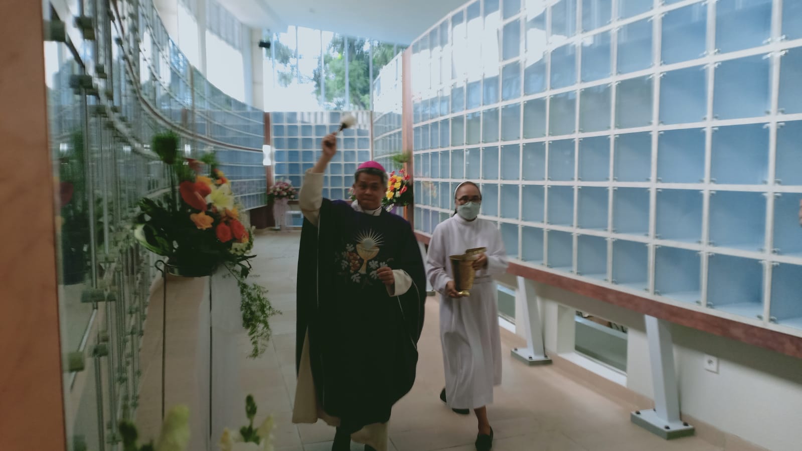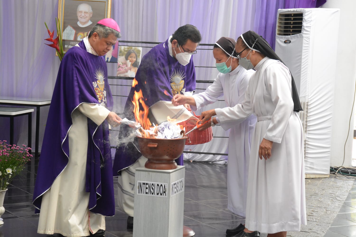 Dalam Misa di aula Kolumbarium ini, ia memberkati dan membakar kertas-kertas berisi intensi doa yang telah ditulis segenap umat yang hadir maupun yang menitip pesan ke pengelola kolumbarium. Pembakaran kertas intensi doa itu dilakukan di tempat khusus yang telah dipersiapkan. Dimasukkan dalam tempat khusus itu juga beribu-ribu nama almarhum yang pernah dilayani di rumah duka, krematorium, dan abunya disimpan di kolumbarium, serta nama-nama yang dituliskan di Memorial Wall.