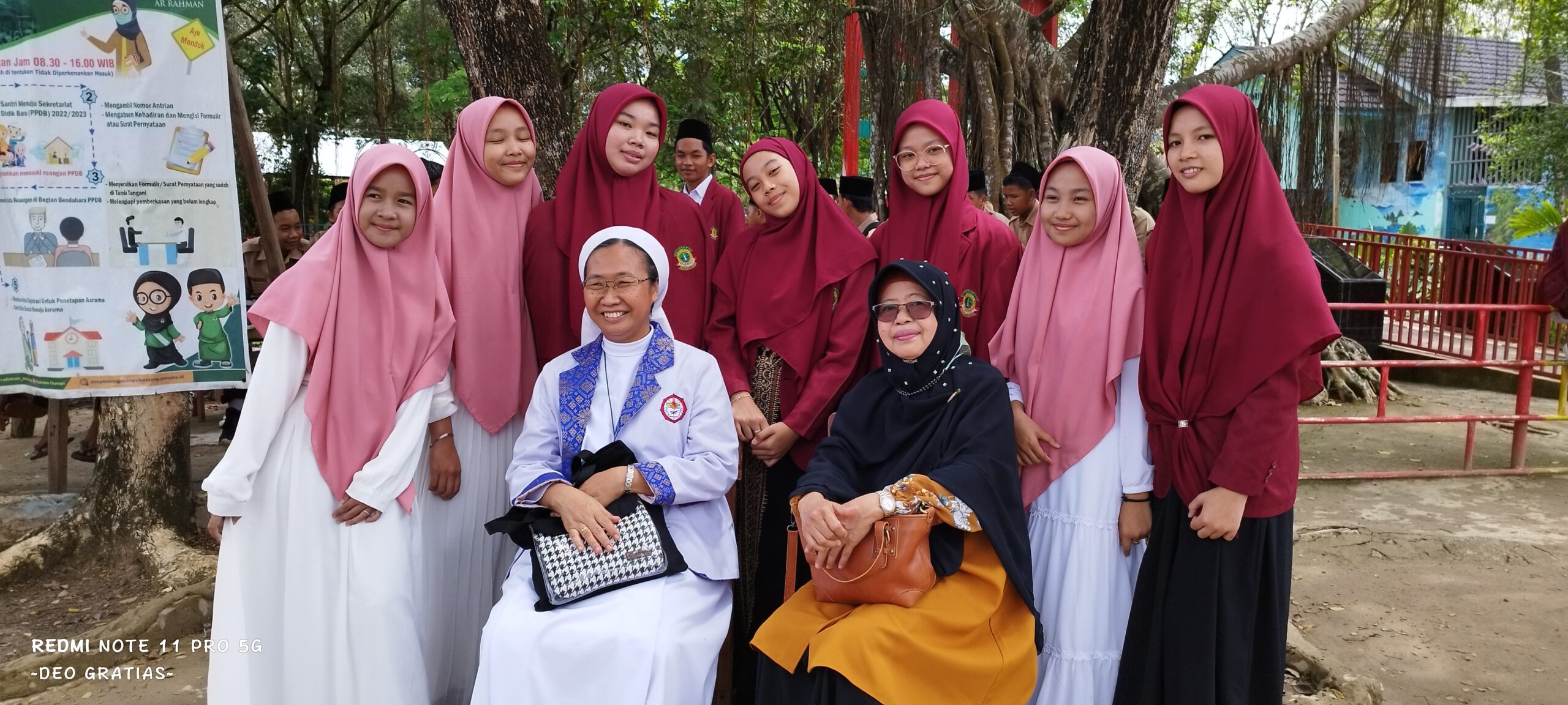 HIDUPKATOLIK.COM – “INI Islamku, adakah kau tahu perasaanku saat mendengar lantunan lembut suara adzan. Hai Nasraniku, bagaimana perasaanku saat suara lonceng menyapa telingamu. Hidup berdampingan namun tak saling menyerang. Hidup bersebelahan, kasih sayang tak pernah pudar. Aku dengan masjidku, kau dengan gerejamu. Berjalanlah di atas dengan damai jangan menyinggung, jangan pula bercerai. Kita hidup di Tanah Sejarah, tanahnya sultan dan raja. Masa lalu pemilik pendahulu masa depan milik genarasi baru”, demikian sepenggal kalimat syair puisi berjudul Moderasi Beragama persembahan santri Pondok Pesantren (Ponpes) Ar Rahman Palembang ketika menyambut kedatangan para siswa Seminari Menengah St. Paulus Palembang pada Sabtu, 15/10/22, yang lalu.