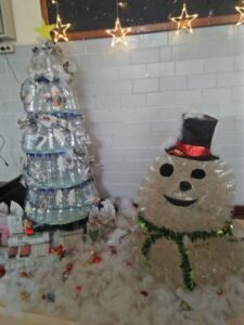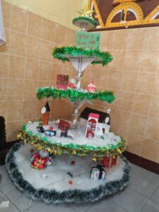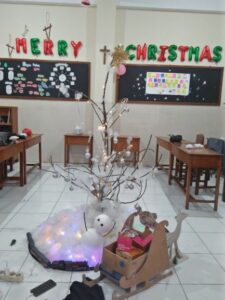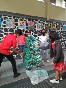 Untuk pembagian tugas antarsiswa di kelas baik suporter dan pembuatan pohon natal menjadi salah satu penilaian termasuk dalam kekompakan dan ide yang muncul.  Realitasnya untuk pohon natal bisa dibuat dengan baik sesuai ketentuan panitia natal OSIS. “ Hambatannya untuk pengecatan ada beberapa tempat yang terkena cat saat finishing,” pungkas Niki.