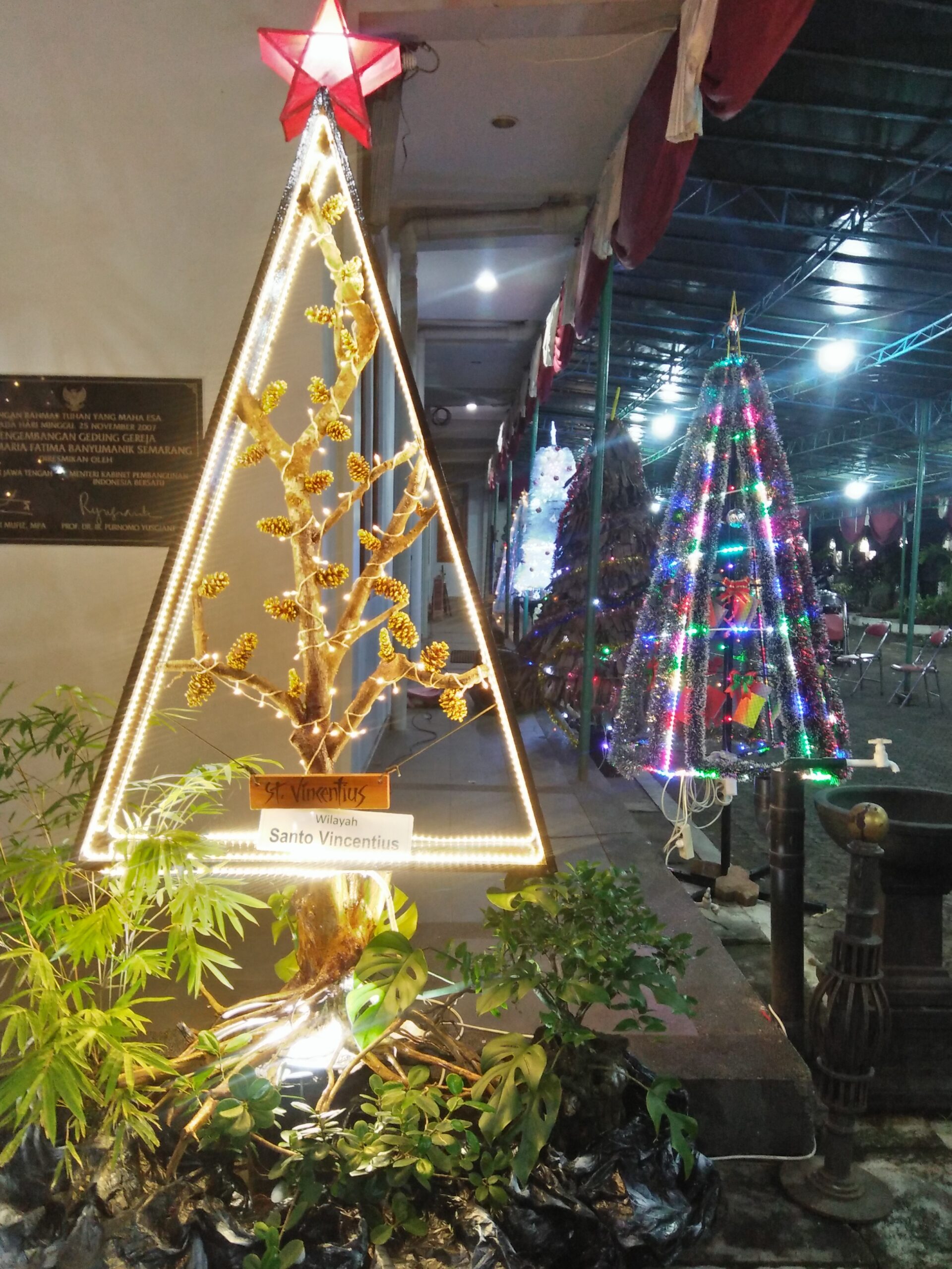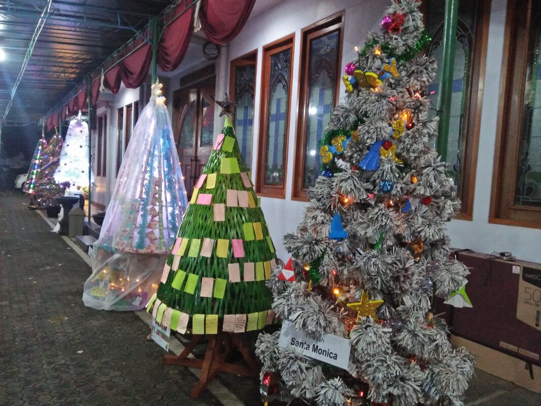 Berbagai pohon natal dipajang di depan dan samping Gereja. Pernak-pernik lampu natal dan kerlap-kerlip nyala lampu saat malam hari di sepanjang selasar gereja dari depan sampai belakang menjadi menarik dan semarak. Pohon natal dari berbagai bahan baku mulai dari daun pisang, ratusan botol minuman, kartu-kartu natal, tampah makanan, berbagai makanan anak-anak, kertas-kertas koran, dan lain-lain menjadi semakin indah dan memesona. Bahkan ada pohon natal yang berisi pesan dan harapan dari warga wilayah untuk tahun 2003.