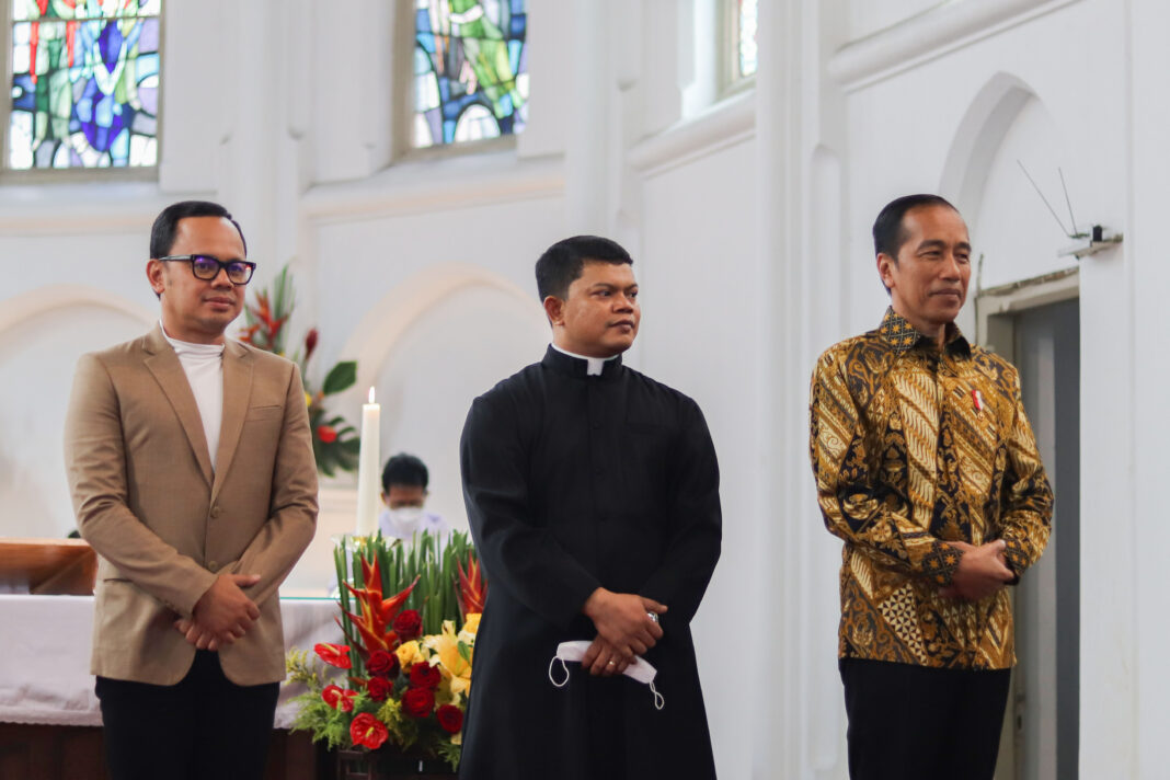 HIDUPKATOLIK.COM – “Mari berikan tepuk tangan yang meriah untuk Presiden kita Bapak Jokowi.” Demikian Pastor Paroki BMV Katedral Bogor Romo Paulus Haruna mengajak seluruh umat yang hadir saat Jokowi menyambagi Gereja Katedral Bogor, Minggu pagi ini, (25/12/2022) pagi.