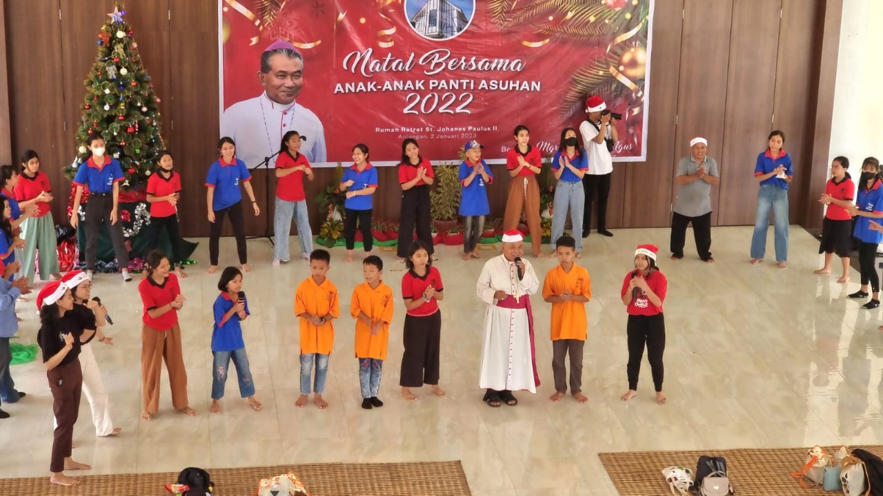HIDUPKATOLIK.COM – Uskup Agung Pontianak, Mgr. Agustinus Agus jamu 46 anak panti Asuhan Katolik untuk Natal Bersama di Rumat Retret Santo Johanes Paulus II Anjongan.