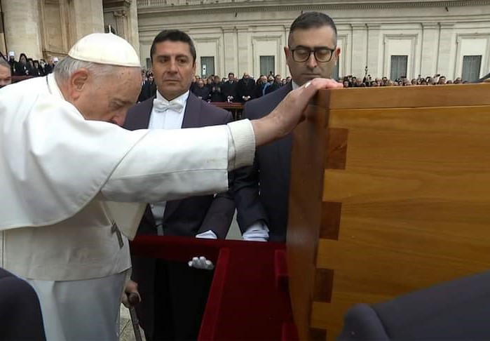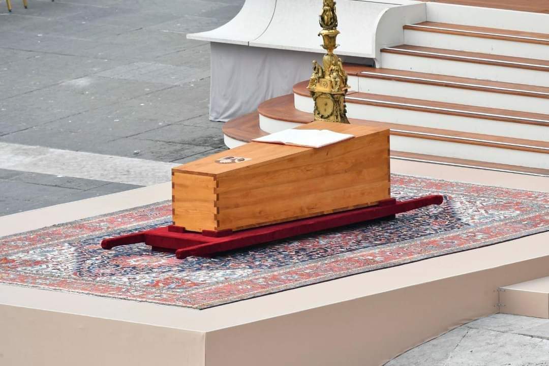Umat Allah yang setia berkumpul bersama, mereka menemani kehidupan Gembala mereka dan mempercayakannya kepada Tuhan. Seperti para wanita di makam dalam Injil, kita di sini dengan keharuman rasa syukur dan urapan harapan, untuk sekali lagi menunjukkan kepadanya cinta yang tak pernah gagal; kami ingin melakukan ini dengan urapan dan hikmat yang sama, dengan kepekaan dan pengabdian yang sama yang telah Dia berikan kepada kami selama bertahun-tahun. Katakanlah bersama-sama: “Bapa, ke tanganMu kami serahkan jiwanya.”