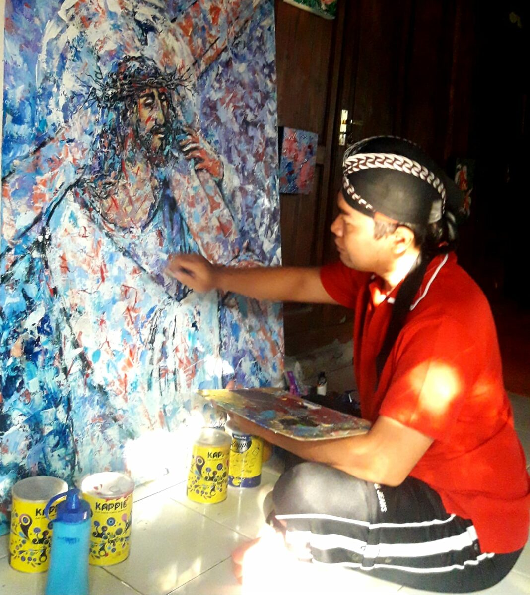 HIDUPKATOLIK.COM – Lukisan “Flat Earth” adalah karya pertama tahun 2023 seniman lukis yang tinggal di Yogyakarta bernama Slamet Jumiarto. Seorang pelukis yang pernah mengalami persekusi, pada 2019 lalu. Ia dan keluarga diusir dari rumah kontrakan di Pleret, Bantul, gara-gara pilihan iman yang berbeda dari sebagian besar warga dusun tempat tinggalnya. Masalah yang viral di media sosial itu tak butuh waktu lama selesai dengan damai.