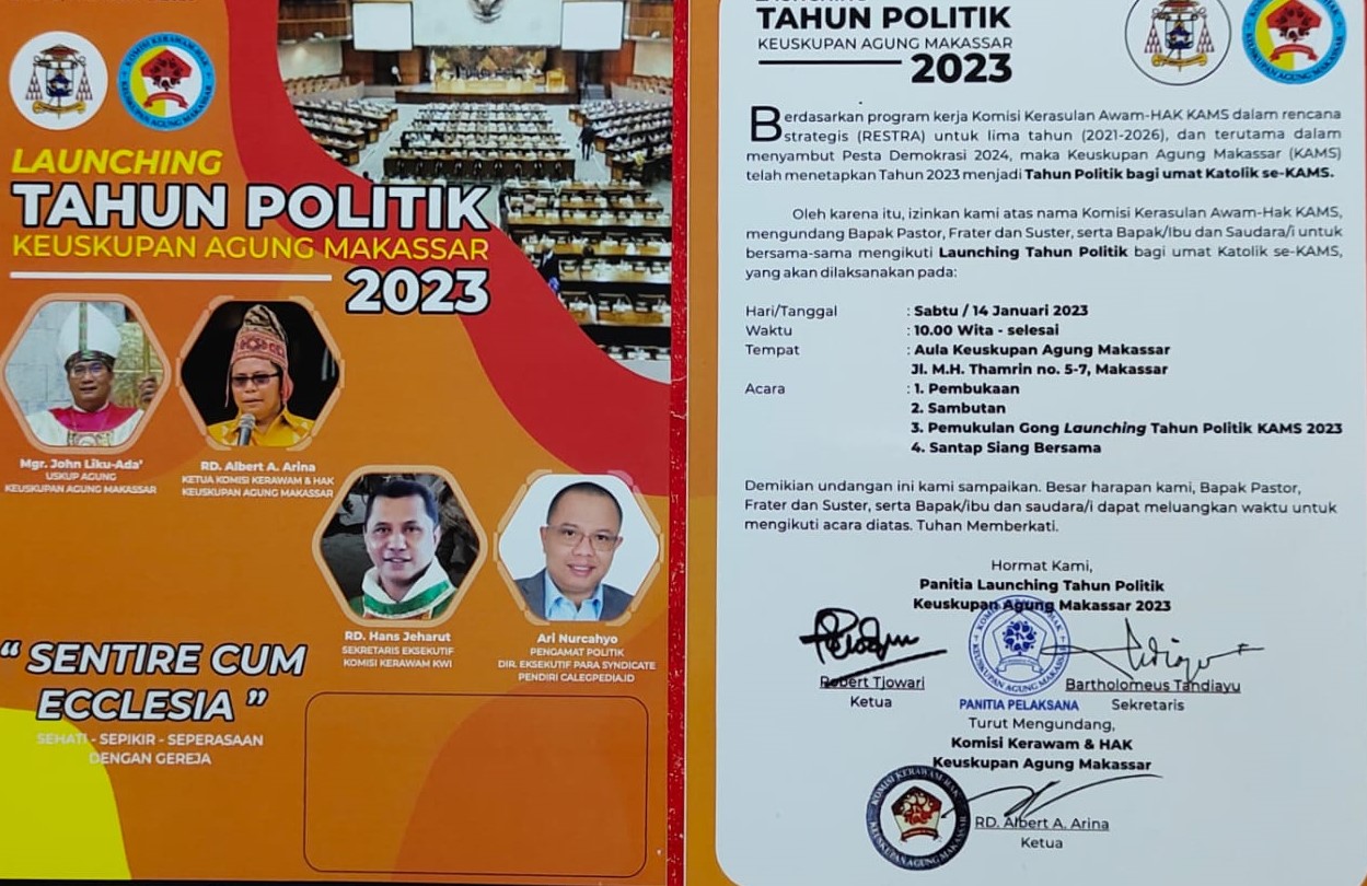 Dalam rangka itu, Pastor Albert mengatakan, pihaknya akan mengadakan launching Tahun Politik KAMS pada hari Sabtu, 14 Januari 2023 di Aula KAMS, Makassar. Launching ini akan diisi dengan pemaparan dari Uskup Agung Makassar, Mgr. John Liku Ada’, Pastor Hans Jeharut (Sekretaris Eksekutif Komisi Kerawam KWI), Ari Nurcahyo (pengamat politik), dan Pastor Albert.