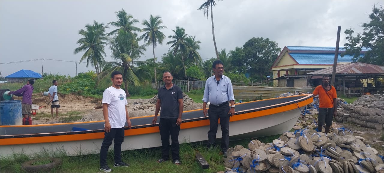 Pastor Fransiskus Xaverius Bolilera (tengah kaos hitam) dan Dominikus Ulukyanan, Wakil Ketua 1 DPRD Kab.Merauke saat pengambilan perahu mesin.