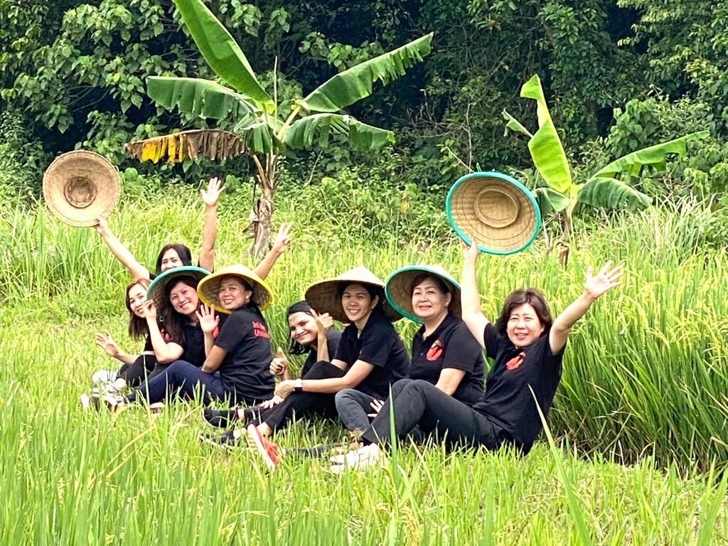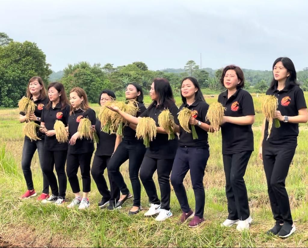 Ibu-ibu itu juga sangat senang berada di persawahan yang indah merasakan semilirnya angin pedesaan.