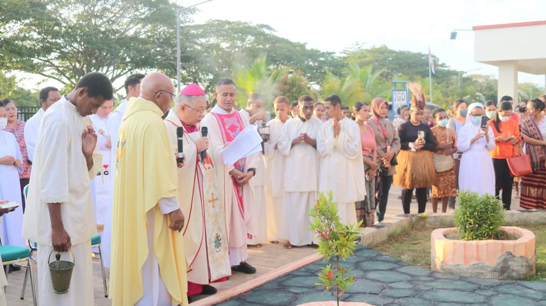 HIDUPKATOLIK.COM – Uskup Agung Merauke Mgr. Petrus Canisius Mandagi MSC, bersama enam imam lainnya memimpin misa syukur perayaan HUT ke- 22 tahun Rumah Sakit Bunda Pengharapan Merauke (RSBP) sekaligus perayaan HOS ke-31 di Lobi RSBP Jln. Tujuh Wali-wali ,Sabtu 19/2/2023.