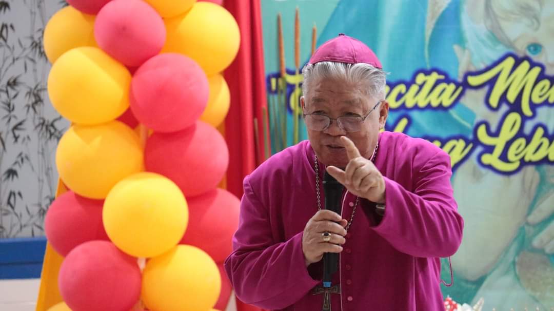 Uskup Mandagi mengucapkan proficiat kepada para suster dan segenap direksi dan karyawan-kartawati RS.Bunda Pengharapan.
