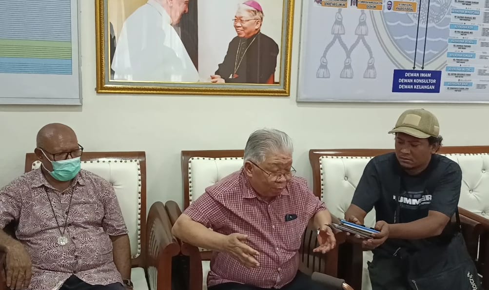 HIDUPKATOLIK.COM – Sejumlah wartawan media cetak dan elektronik secara tiba-tiba datang menemui Uskup Agung Merauke, Mgr. Petrus Canisius Mandagi, MSC di Wisma Keuskupan Jln.Raya Mandala 30, Merauke-Papua Selatan Jumat, 24/2/2023
