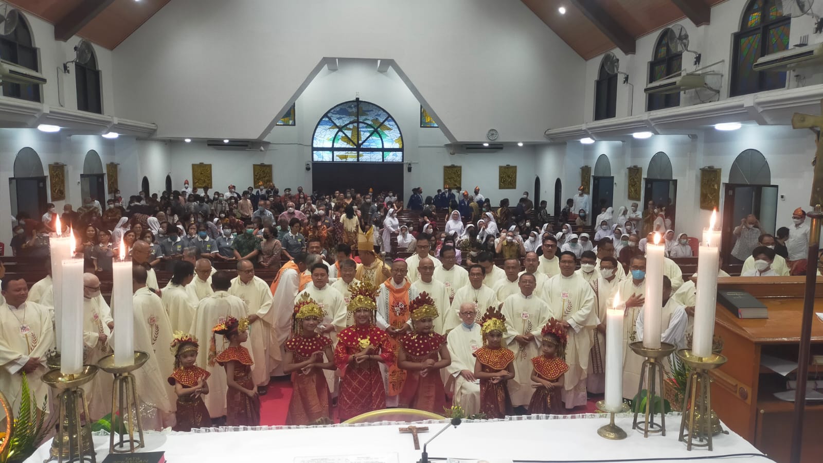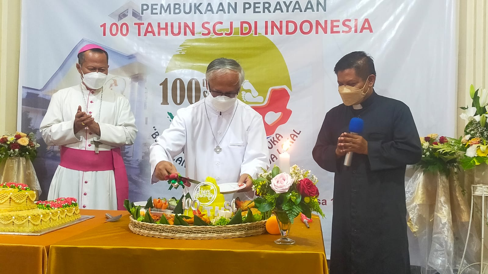 HIDUPKATOLIK.COM – Dalam rangka menyongsong 100 tahun Imam-iman SCJ hadir di Indonesia berlangsung pembukaan perayaan dengan Ekaristi yang dipimpin oleh Mgr. Yohanes Harun Yuwono (Uskup Agung Palembang) di Gereja Hati Kudus, Palembang, Selasa, 14/3/2023. Ia didampingi Mgr. Aloysius Sudarso, SCJ (Uskup Emiritus), Mgr. Avien Triatmadja (Uskup Terpilih Tanjungkarang), Romo Andreas Suparman (Superior SCJ). Hadir sejumlah biarawan-biarawati.