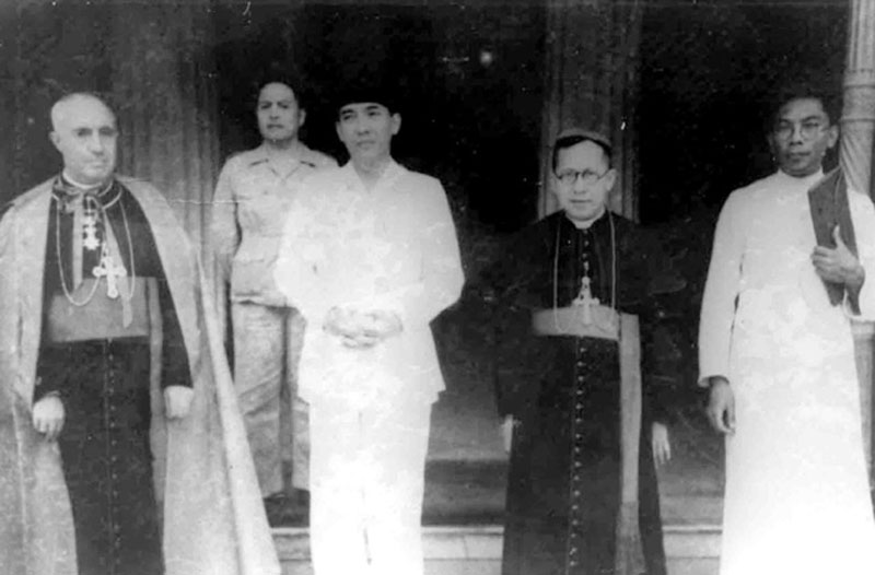 Ir. Soekarno (kedua dari kiri) dan Mgr. A. Soegijapranata, SJ (kedua dari kanan)
