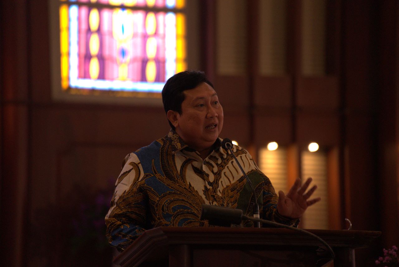 “Hari ini ada cerita inspirasi dari fragmen yang diperankan ‘Raksasa dan Putri’. Ada pesan kepada kita semua bahwa kita perlu terbuka menerima orang lain sebagai saudara. Termasuk menerima orang yang berbeda agama dan suku dengan kita, karena kita adalah anak-anak Tuhan,” ungkap Adiyarto Sumardjono disambut tepuk tangan meriah oleh anak-anak yang hadir.
