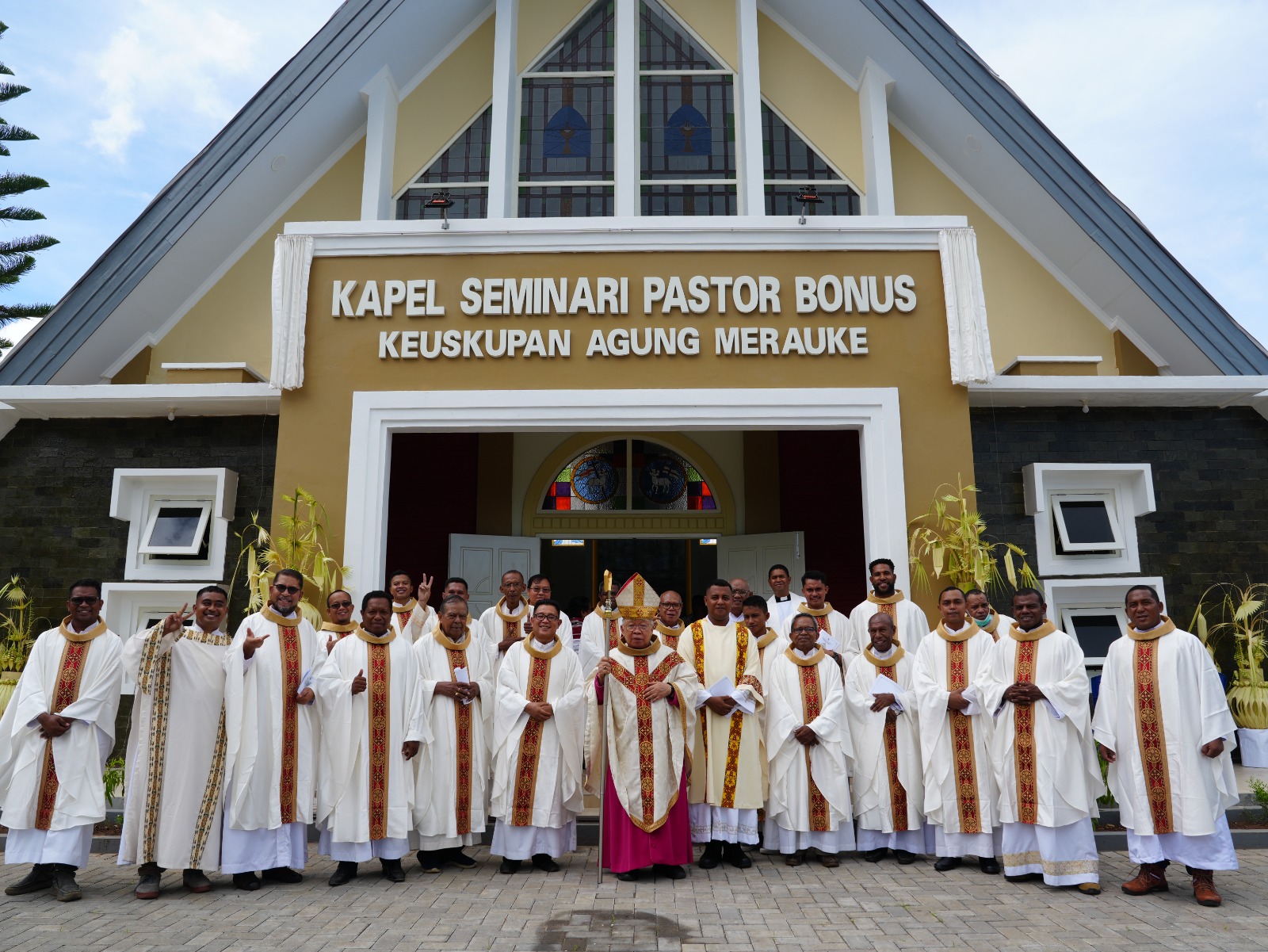 Uskup Mandagi mengatakan, dalam kapel baru ditahbiskan Frater Simon Patrus Laian. Gedung adalah lambang dari Gereja itu sendiri, Gedung menjadi kokoh karena fondasi yang kuat demikian juga dengan Gereja Keuskupan Agung Merauke (KAMe), iman kokoh karena fondasi yang kuat. Fondasi yang kuat itu adalah Yesus Kristus karena melalui gedung gereja para seminaris, para pastor datang di tempat ini.