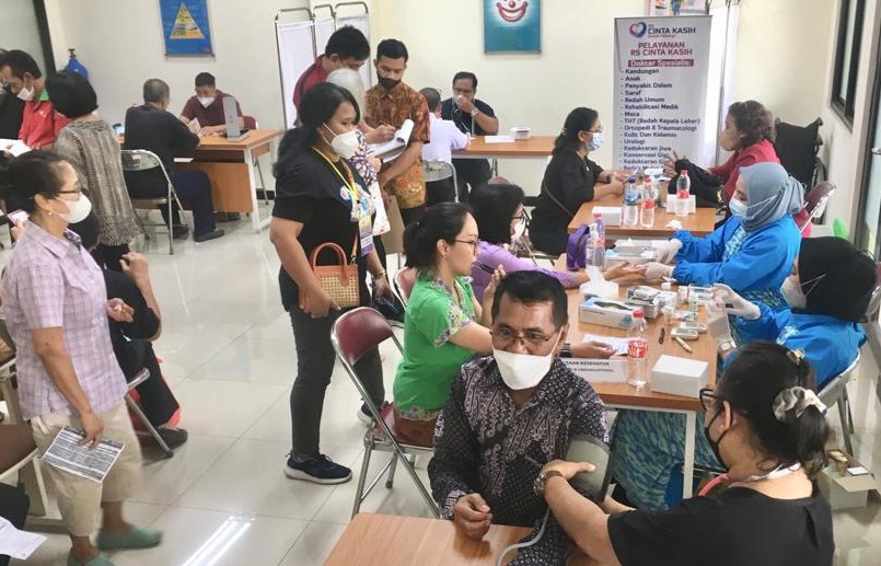 Kegiatan lain yang diikuti ratusan umat adalah Cek Kesehatan Gratis meliputi pemeriksaan tekanan darah, gula darah, asam urat, kolesterol, konsultasi dokter, pemberian obat dan vitamin. Acara ini kerja sama dengan Rumah Sakit Cinta Kasih Ciputat.