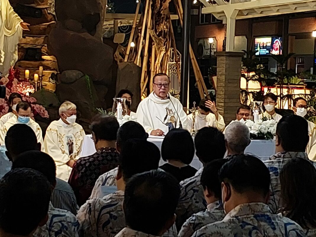 Meriah karena ada sepuluh imam yang berkonselebrasi merayakan Misa puncak HUT ini. Konselebran utama Kepala Paroki, Romo Aloysius Susilo Wijoyo. Para konselebran adalah Romo Patrick Slamet Widodo (Romo Rekan Paroki Ciputat) dan enam romo yang pernah bertugas di paroki ini. Mereka adalah Romo Alexius Widianto, Romo Aloysius Hadi Nugroho, Romo Alphonsus Setya Gunawan, Romo Aloysius Yus Noron, Romo Silvester Hari Pamungkas, Romo Wahyu Kristian Wijaya. Dua romo yang lain romo yang berasal dari paroki ini, Romo Pius Novrin dan Romo Stevanus Harry Yudanto.