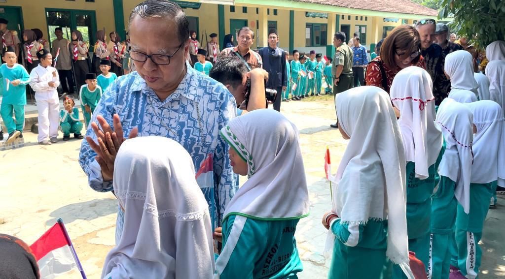 Dalam kunjungan di Desa Ranca Iyuh ini, Kardinal menyerahkan cendera mata bagi para guru, para siswa, dan para petani.